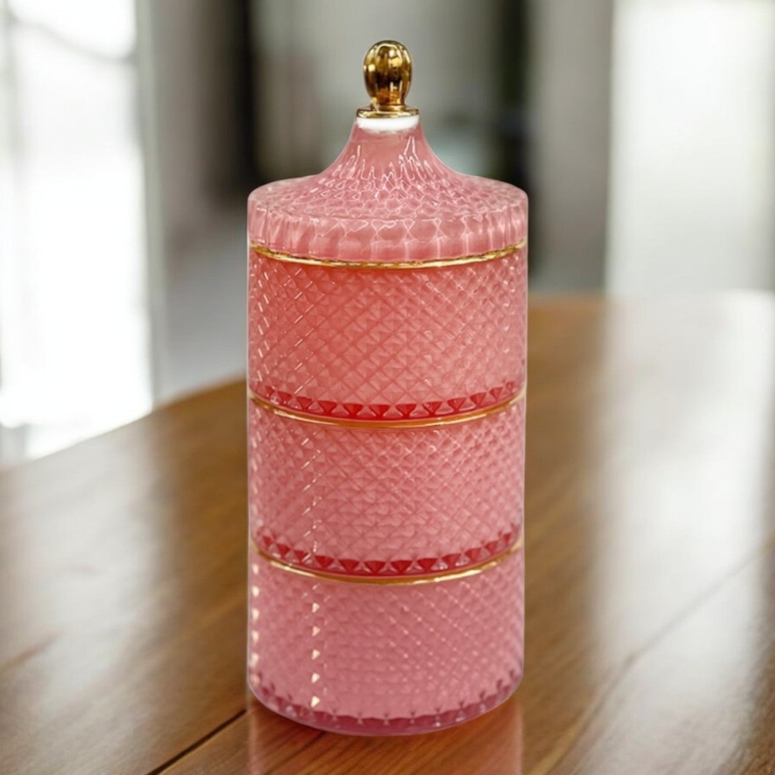 Three Stack Candle Trio – Customisable Fragrance Set Royal Pink with Gold Trim